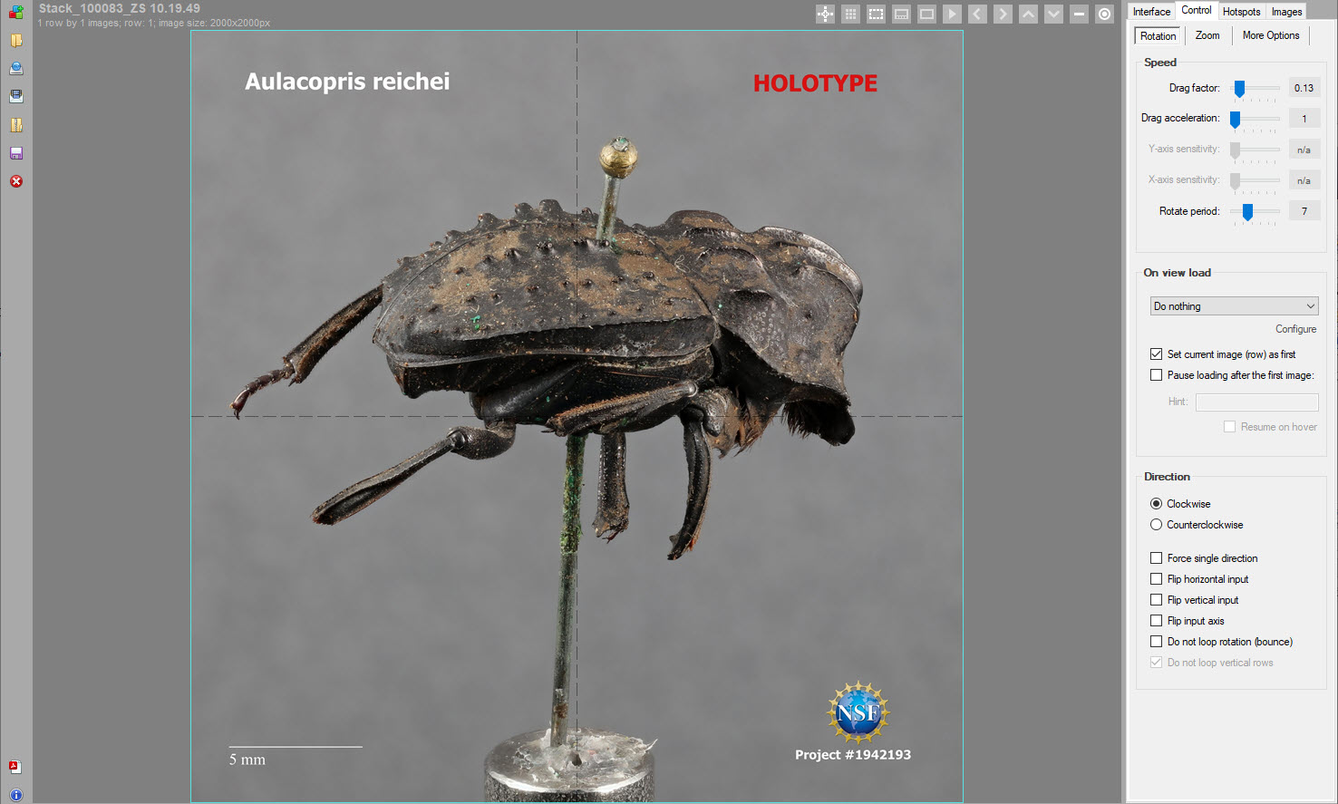 The resulting web site interface provides easy controls for manipulating the virtual specimen and zooming in for full-resolution details. A hotspot button provides an image of the identifying labels that are kept on the insect’s pin in the museum’s collection drawer.